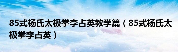 关于85式杨氏太极拳李占英教学篇,85式杨氏太极拳李占英这个很多人还不知道,今天菲菲来为大家解答以上的问题,现在让我们一起来看看吧!