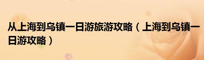 关于从上海到乌镇一日游旅游攻略,上海到乌镇一日游攻略这个很多人还不知道,今天菲菲来为大家解答以上的问题,现在让我们一起来看看吧!