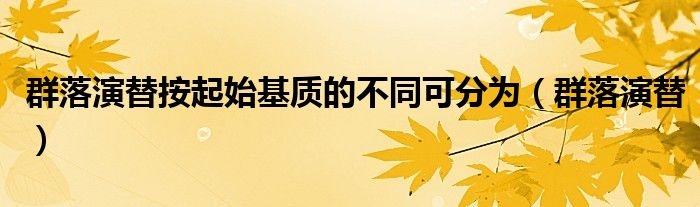 关于群落演替按起始基质的不同可分为,群落演替这个很多人还不知道,今天菲菲来为大家解答以上的问题,现在让我们一起来看看吧!
