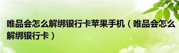 唯品会怎么解绑银行卡苹果手机(唯品会怎么解绑银行卡)