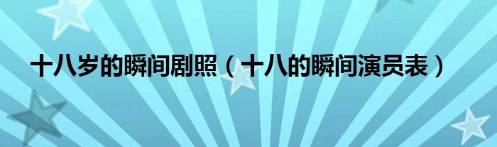 大家好,小晋来为大家解答以下问题,关于十八岁的瞬间剧照,十八的瞬间演员表很多人还不知道,今天让我们一起来看看吧!