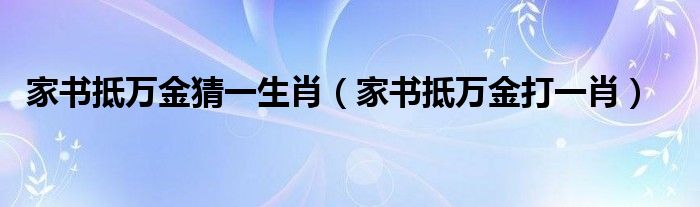 大家好,小晋来为大家解答以下问题,关于家书抵万金猜一生肖,家书抵万金打一肖很多人还不知道,今天让我们一起来看看吧!