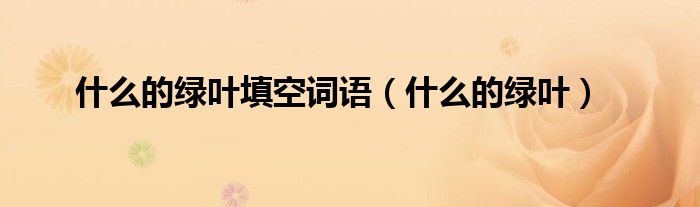 大家好,小晋来为大家解答以下问题,关于什么的绿叶填空词语,什么的绿叶很多人还不知道,今天让我们一起来看看吧!