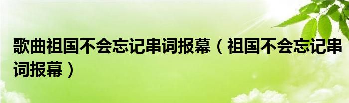 关于歌曲祖国不会忘记串词报幕,祖国不会忘记串词报幕这个很多人还不知道,今天菲菲来为大家解答以上的问题,现在让我们一起来看看吧!