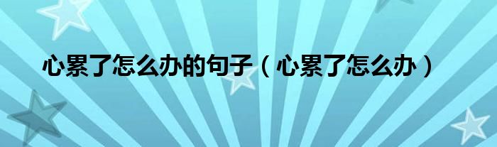 大家好,雨雨来为大家解答以上问题,心累了怎么办的句子,心累了怎么办很多人还不知道,现在让我们一起来看看吧!