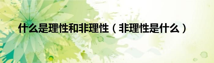 关于什么是理性和非理性,非理性是什么这个很多人还不知道,今天菲菲来为大家解答以上的问题,现在让我们一起来看看吧!