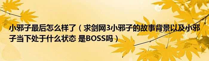 关于小邪子最后怎么样了,求剑网3小邪子的故事背景以及小邪子当下处于什么状态 是BOSS吗这个很多人还不知道,今天菲菲来为大家解答以上的问题,现在让我们一起来看看吧!
