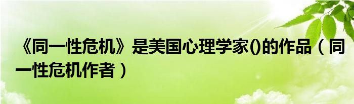 大家好,小晋来为大家解答以下问题,关于《同一性危机》是美国心理学家()的作品,同一性危机作者很多人还不知道,今天让我们一起来看看吧!