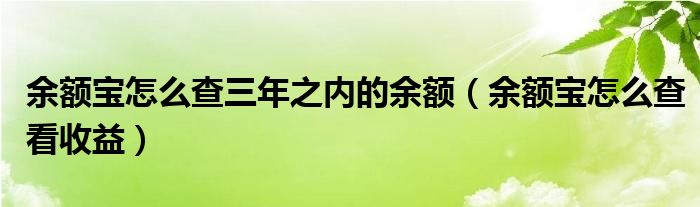 余额宝怎么查三年之内的余额,余额宝怎么查看收益这个很多人还不知道,小飞来为大家解答以上的问题。现在让我们一起来看看吧!