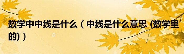 关于数学中中线是什么,中线是什么意思 (数学里的)这个很多人还不知道,今天菲菲来为大家解答以上的问题,现在让我们一起来看看吧!