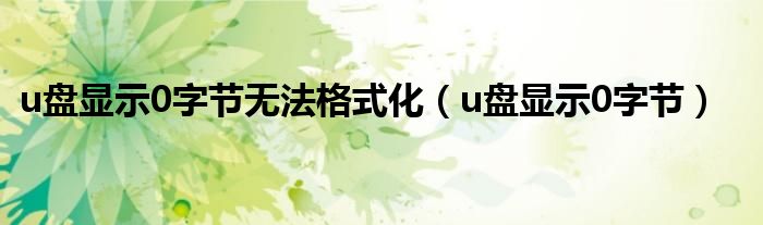 大家好,小飞来为大家解答以上问题,u盘显示0字节无法格式化,u盘显示0字节很多人还不知道,现在让我们一起来看看吧!