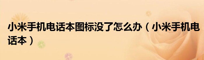 小米手机电话本图标没了怎么办,小米手机电话本很多人还不知道,乐乐来为大家解答以上问题,现在让我们一起来看看吧!
