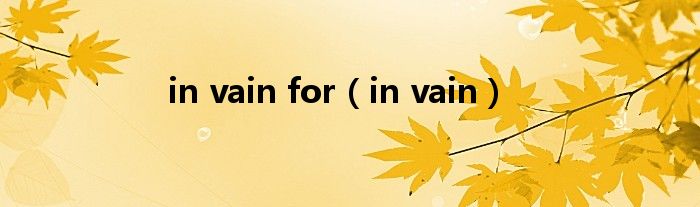 最佳答案关于in vain for,in vain这个很多人还不知道,今天菲菲来为大家解答以上的问题,现在让我们一起来看看吧!1、in vain徒然;无效All our hard work was in vain.我们一切的努力都是徒劳的。本文到此分享完毕,希望对大家有所帮助。