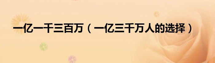 一亿一千三百万,一亿三千万人的选择这个很多人还不知道,小飞来为大家解答以上的问题。现在让我们一起来看看吧!