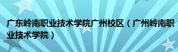 广东岭南职业技术学院广州校区(广州岭南职业技术学院)