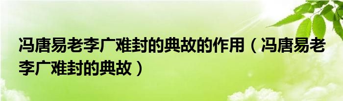 大家好,小晋来为大家解答以下问题,关于冯唐易老李广难封的典故的作用,冯唐易老 李广难封的典故很多人还不知道,今天让我们一起来看看吧!
