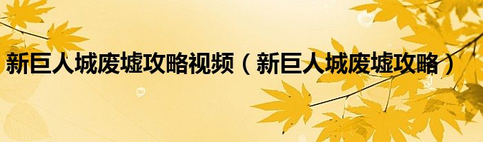 关于新巨人城废墟攻略视频,新巨人城废墟攻略这个很多人还不知道,今天菲菲来为大家解答以上的问题,现在让我们一起来看看吧!