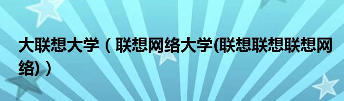 大家好,小常来为大家解答以上问题。大联想大学,联想网络大学(联想联想联想网络)很多人还不知道,现在让我们一起来看看吧!