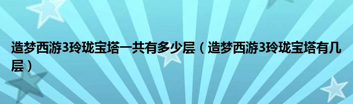 关于造梦西游3玲珑宝塔一共有多少层,造梦西游3玲珑宝塔有几层这个很多人还不知道,今天菲菲来为大家解答以上的问题,现在让我们一起来看看吧!