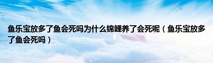大家好,小晋来为大家解答以下问题,关于鱼乐宝放多了鱼会死吗为什么锦鲤养了会死呢,鱼乐宝放多了鱼会死吗很多人还不知道,今天让我们一起来看看吧!