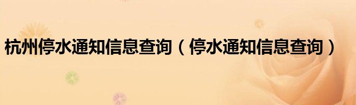 大家好,小晋来为大家解答以下问题,关于杭州停水通知信息查询,停水通知信息查询很多人还不知道,今天让我们一起来看看吧!
