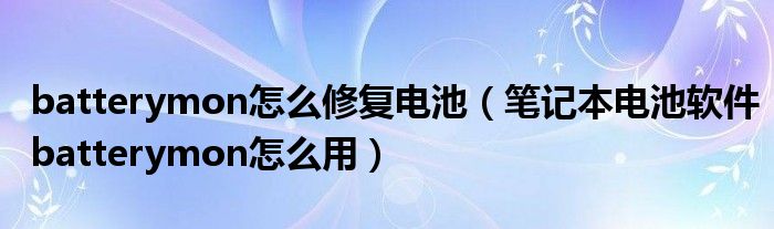 batterymon怎么修复电池(笔记本电池软件batterymon怎么用)