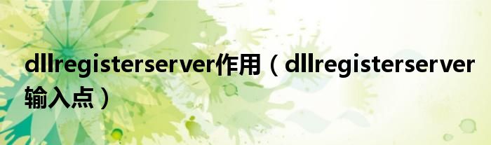 大家好,雨雨来为大家解答以上问题,dllregisterserver作用,dllregisterserver输入点很多人还不知道,现在让我们一起来看看吧!