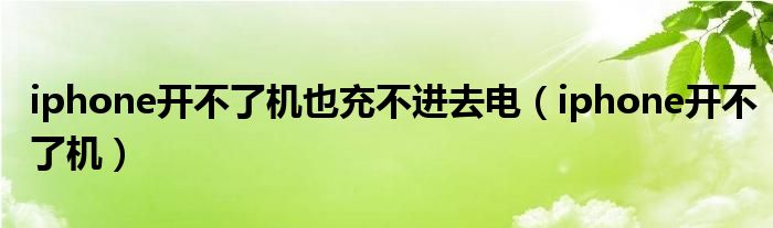 最佳答案大家好,雨雨来为大家解答以上问题,iphone开不了机也充不进去电,iphone开不了机很多人还不知道,现在让我们一起来看看吧!1、苹果手机打不开怎么办?iPhone7无法开机的原因有很多。下面分析一下iPhone7无法开机的原因以及解决方法。让我们来看看。2、首先,停电了。3、别说这个小白了,也有可能是...