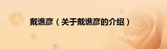 戴谯彦(关于戴谯彦的介绍)