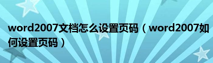 word2007文档怎么设置页码(word2007如何设置页码)
