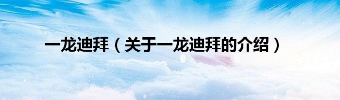 一龙迪拜(关于一龙迪拜的介绍)
