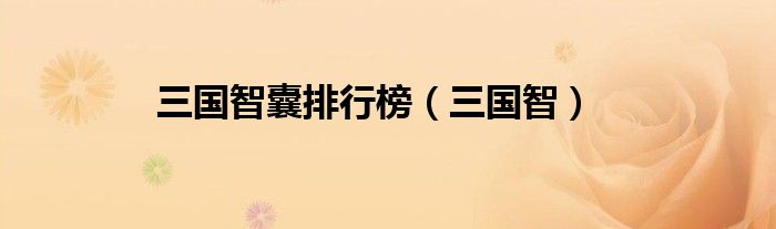 三国智囊排行榜(三国智)