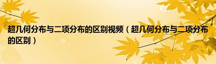 关于超几何分布与二项分布的区别视频,超几何分布与二项分布的区别这个很多人还不知道,今天菲菲来为大家解答以上的问题,现在让我们一起来看看吧!