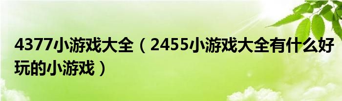 4377小游戏大全(2455小游戏大全有什么好玩的小游戏)