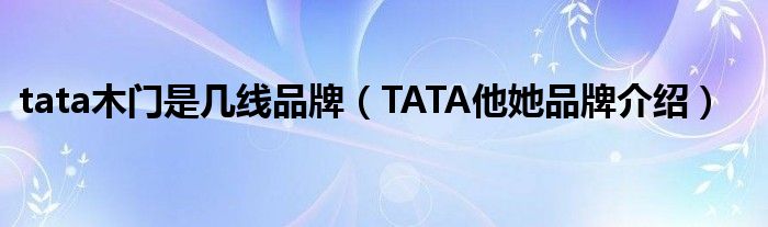 大家好,小源来为大家解答以上问题。tata木门是几线品牌,TATA他她品牌介绍很多人还不知道,现在让我们一起来看看吧!