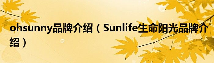 大家好,小源来为大家解答以上问题。ohsunny品牌介绍,Sunlife生命阳光品牌介绍很多人还不知道,现在让我们一起来看看吧!