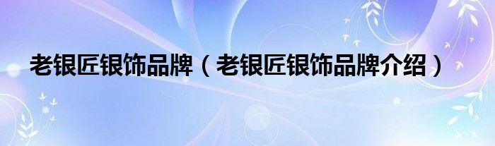 大家好,小源来为大家解答以上问题。老银匠银饰品牌,老银匠银饰品牌介绍很多人还不知道,现在让我们一起来看看吧!