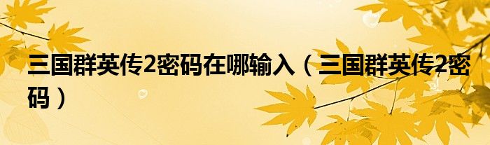 三国群英传2密码在哪输入,三国群英传2密码这个很多人还不知道,小飞来为大家解答以上的问题。现在让我们一起来看看吧!