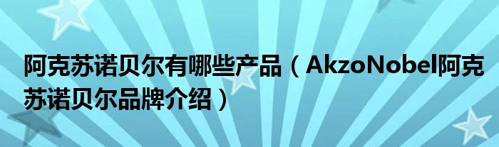 大家好,小源来为大家解答以上问题。阿克苏诺贝尔有哪些产品,AkzoNobel阿克苏诺贝尔品牌介绍很多人还不知道,现在让我们一起来看看吧!