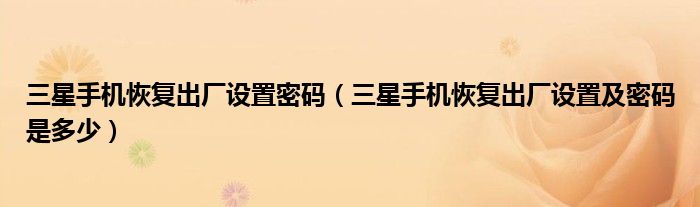 大家好,小常来为大家解答以上问题。三星手机恢复出厂设置密码,三星手机恢复出厂设置及密码是多少很多人还不知道,现在让我们一起来看看吧!