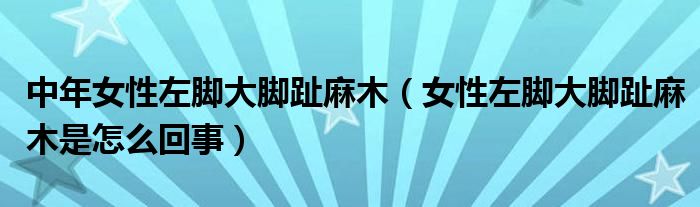 中年女性左脚大脚趾麻木(女性左脚大脚趾麻木是怎么回事)