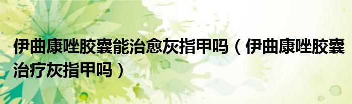 大家好,linda来为大家解答以上的问题。伊曲康唑胶囊能治愈灰指甲吗,伊曲康唑胶囊治疗灰指甲吗很多人还不知道,现在让我们一起来看看吧!