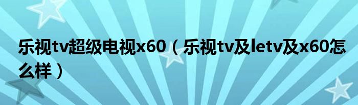 1,乐视tv letv x60怎么样 :Letv性价比相当不错,当然小米电视也不错,除了开机慢一点而已。