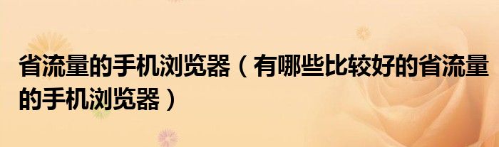 省流量的手机浏览器(有哪些比较好的省流量的手机浏览器)