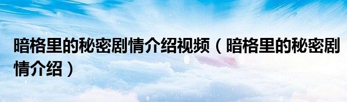 大家好,雨雨来为大家解答以上问题,暗格里的秘密剧情介绍视频,暗格里的秘密剧情介绍很多人还不知道,现在让我们一起来看看吧!