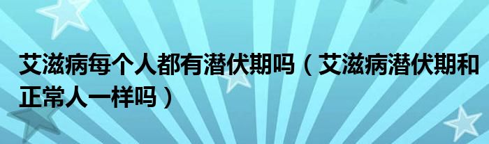 大家好,linda来为大家解答以上的问题。艾滋病每个人都有潜伏期吗,艾滋病潜伏期和正常人一样吗很多人还不知道,现在让我们一起来看看吧!