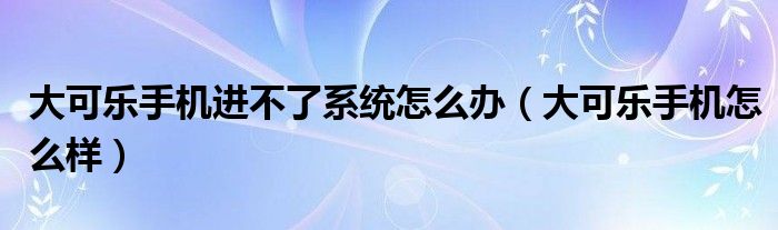 大可乐手机进不了系统怎么办(大可乐手机怎么样)