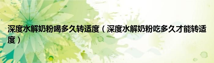 深度水解奶粉喝多久转适度(深度水解奶粉吃多久才能转适度)