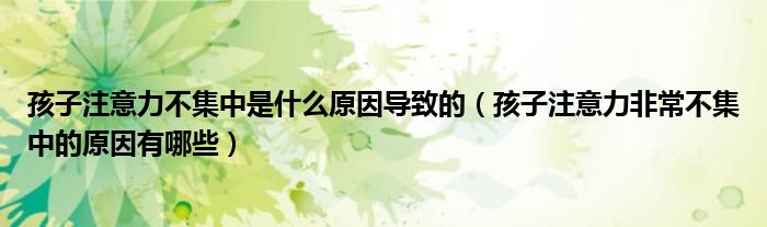 大家好,linda来为大家解答以上的问题。孩子注意力不集中是什么原因导致的,孩子注意力非常不集中的原因有哪些很多人还不知道,现在让我们一起来看看吧!