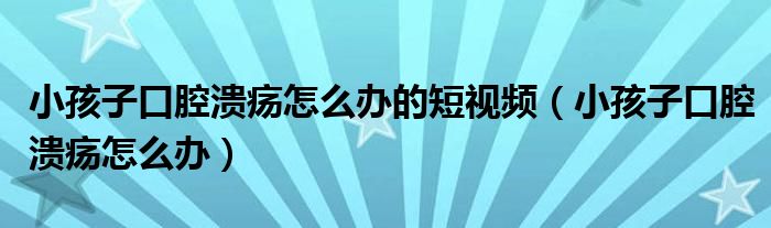 大家好,linda来为大家解答以上的问题。小孩子口腔溃疡怎么办的短视频,小孩子口腔溃疡怎么办很多人还不知道,现在让我们一起来看看吧!